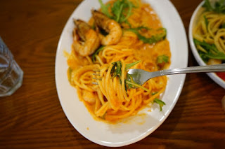 하나는 루콜라, 엔쵸비, 오일 파스타 또 하나는 새우 로제 파스타 그리고 음료수까지 이렇게 시켰고요