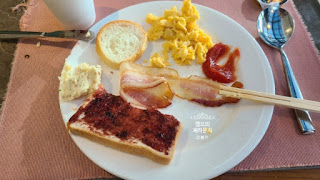 7시부터 아침을 먹을 수 있는데 저희는 8시쯤에 더 샬레에 도착한 것 같아요전날 9시에는 혼잡하기 때문에 그 전에 오는 것이 좋다는 안내 메일을 받았습니다.